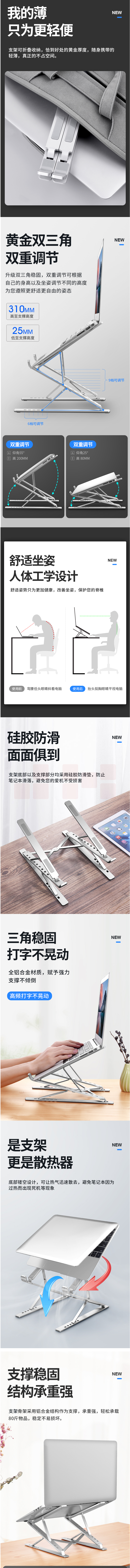笔记本电脑支架 N8 电脑增高架 铝合金两层氧化款
