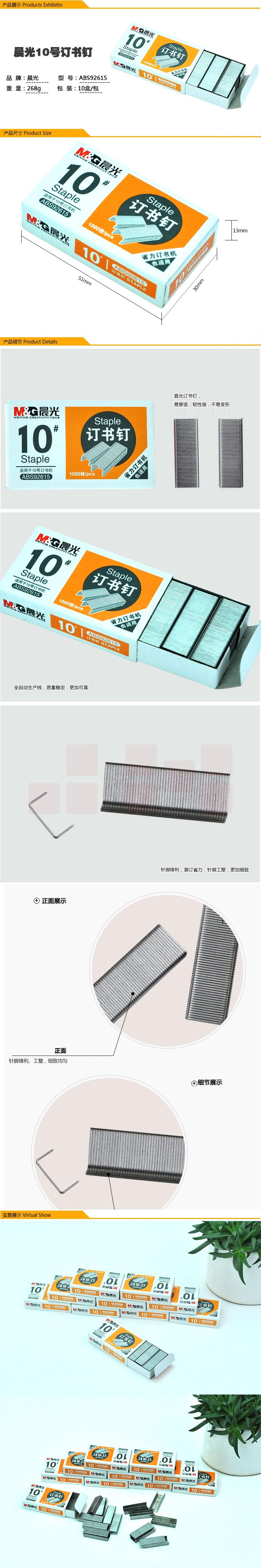 晨光 10#订书钉 易穿透订书针 办公用品 1000枚/盒 ABS92615