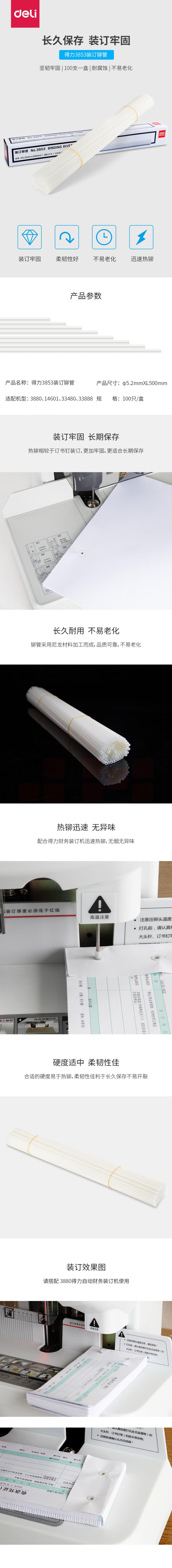 得力 3853自动财务凭证装订铆管500mm 100支/盒 (适用于得力14601 33480)