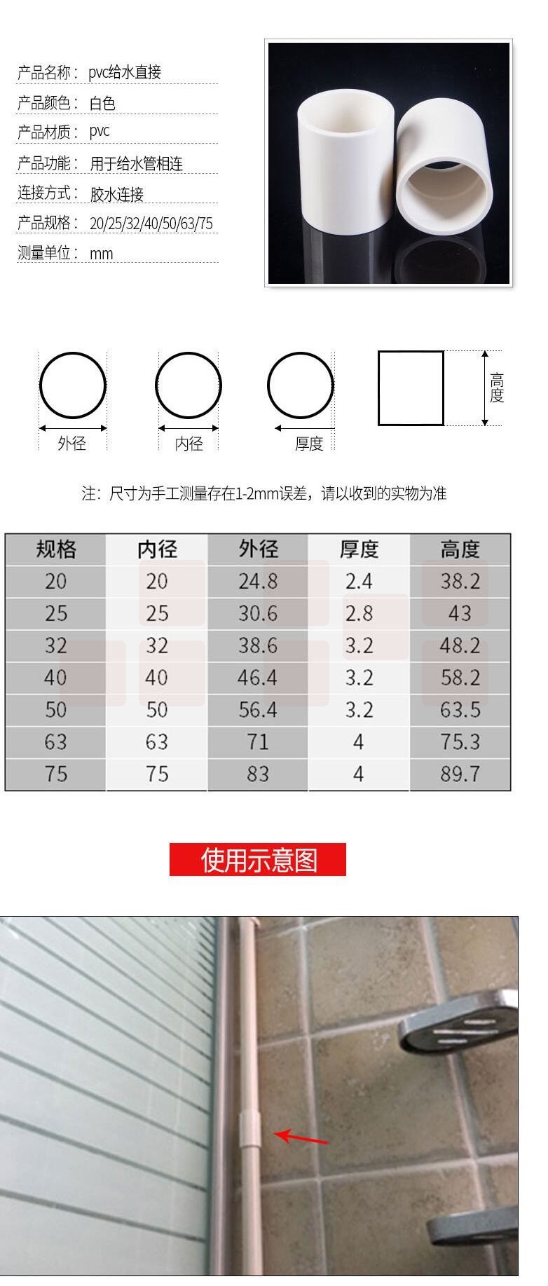 PVC直通直接 管箍 50mm 货号:JC