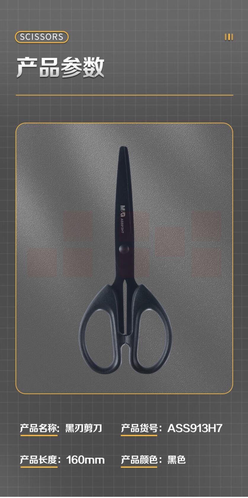 晨光160mm耐磨黑刃剪刀 不锈钢刀刃不易粘胶 中号ASS913H7