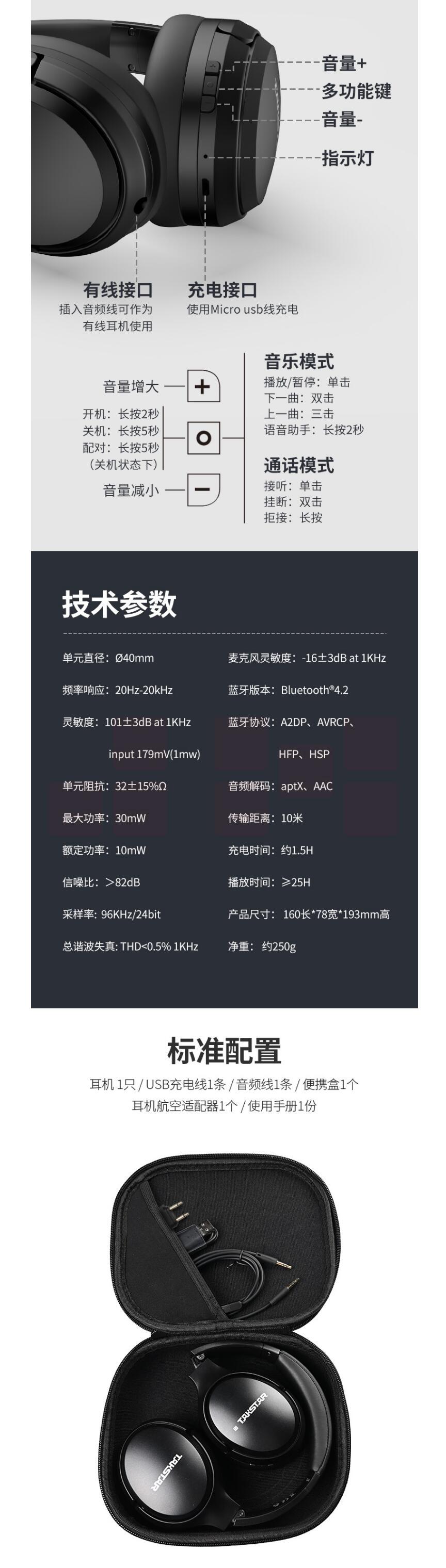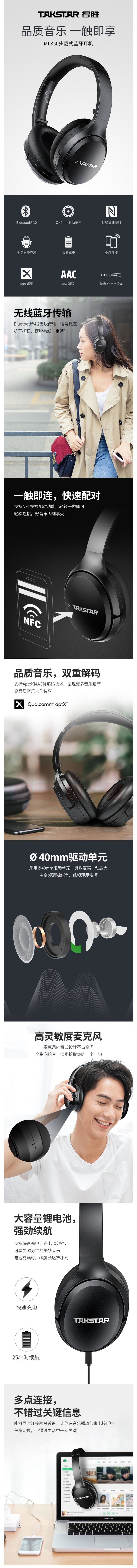 得胜(TAKSTAR)ML850 头戴式蓝牙耳机 立体声无线耳机 游戏音乐耳机 手机耳机 通用