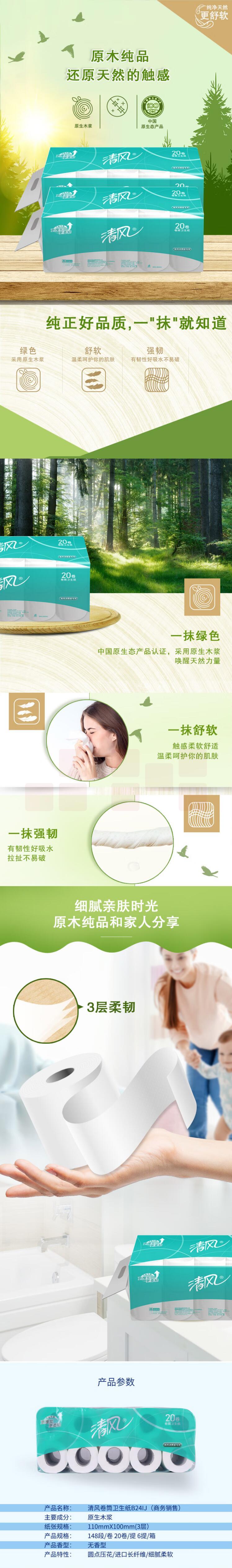 清风 B24IJ 3层平纹厕纸148段/卷 20卷/提 110mm*100mm卷筒卫生纸