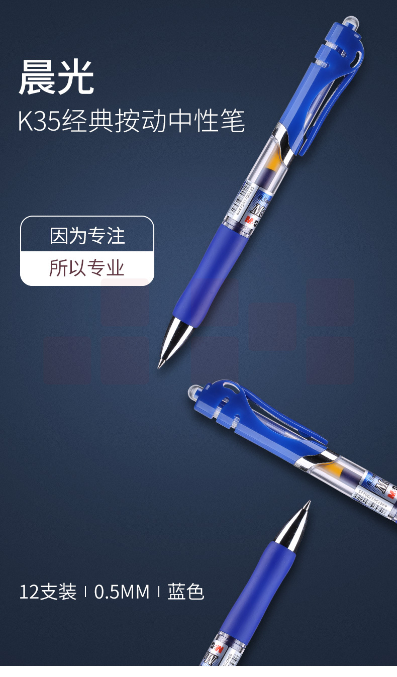 晨光 M&G K-35 0.5mm (蓝色) 中性笔 12支/盒 单位:支