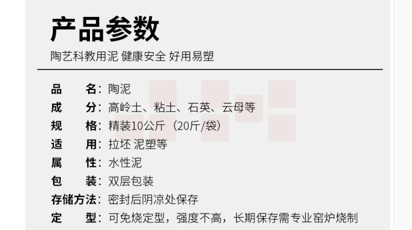 陶泥 陶土泥料 10kg/袋 货号:JC