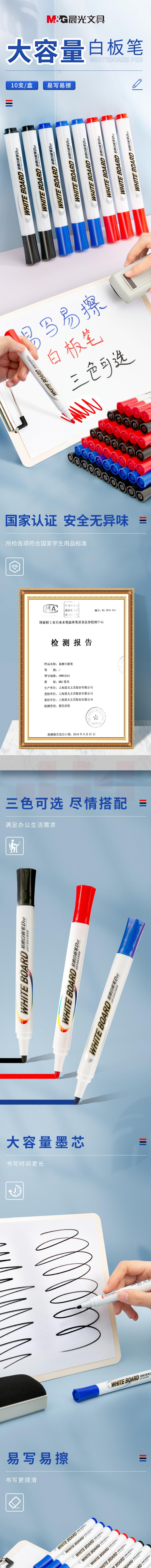 晨 可擦白板笔 D10单头办公会议笔 易擦白板笔 黑色10支/盒 AWMY2202