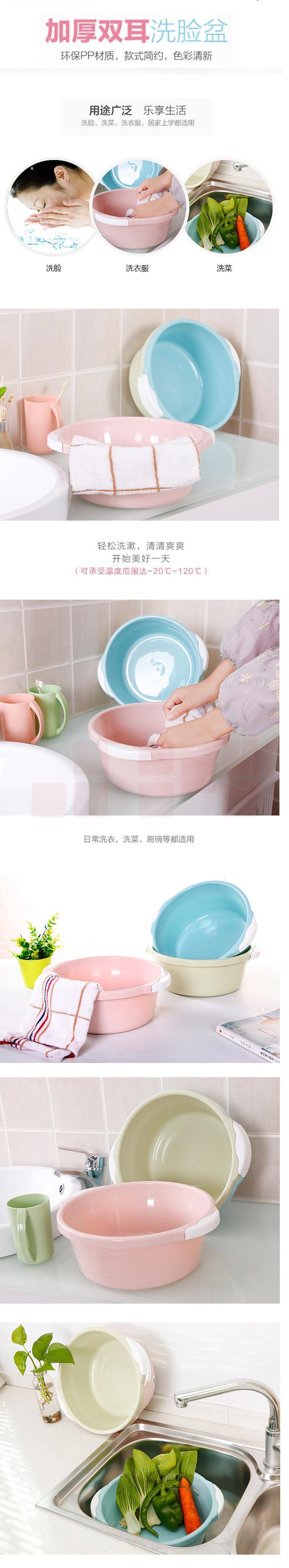 健安 粉色大号脸盆 双耳脸盆 加厚塑料洗脸盆洗衣盆 尺寸:37.5*13cm 货号:YC