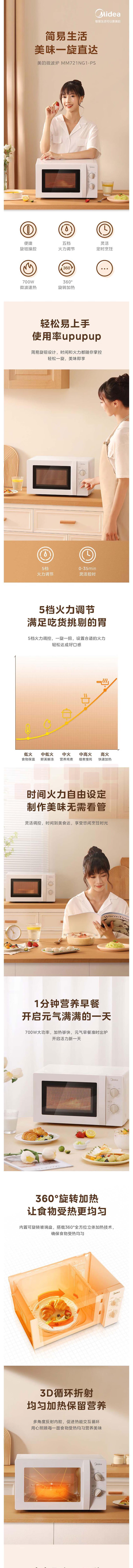 美的 家用大容量 微波炉 智能菜单 易清洁面板21升 转盘直径255mm MM721NG1-PS