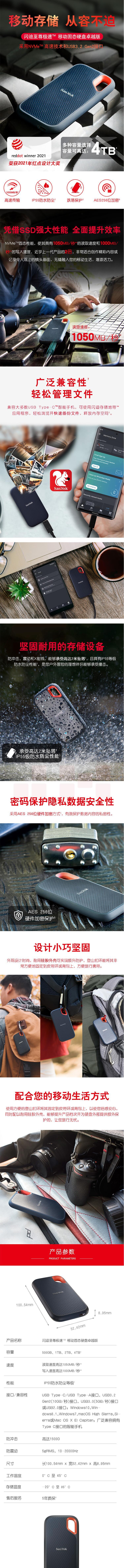 闪迪 2TB Nvme 移动固态硬盘(PSSD)E61 IP55等级三防保护