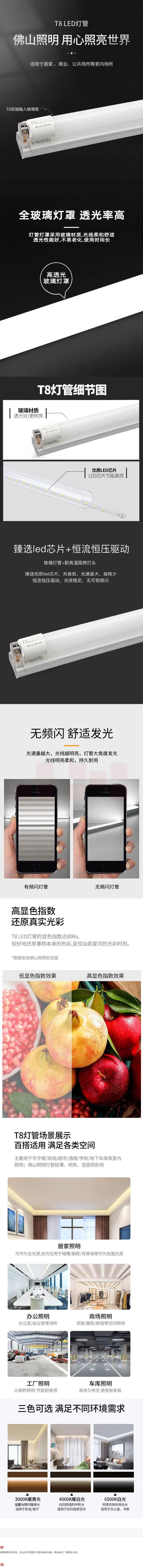 佛山照明 T8灯管1.2米16W LED日光灯管中间输入一体化灯管加支架(6500K)