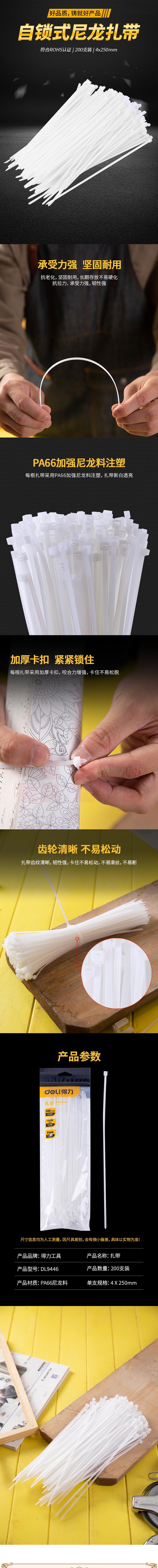 得力 尼龙扎带 4*250mm自锁式理线带 200支装 白色DW4010