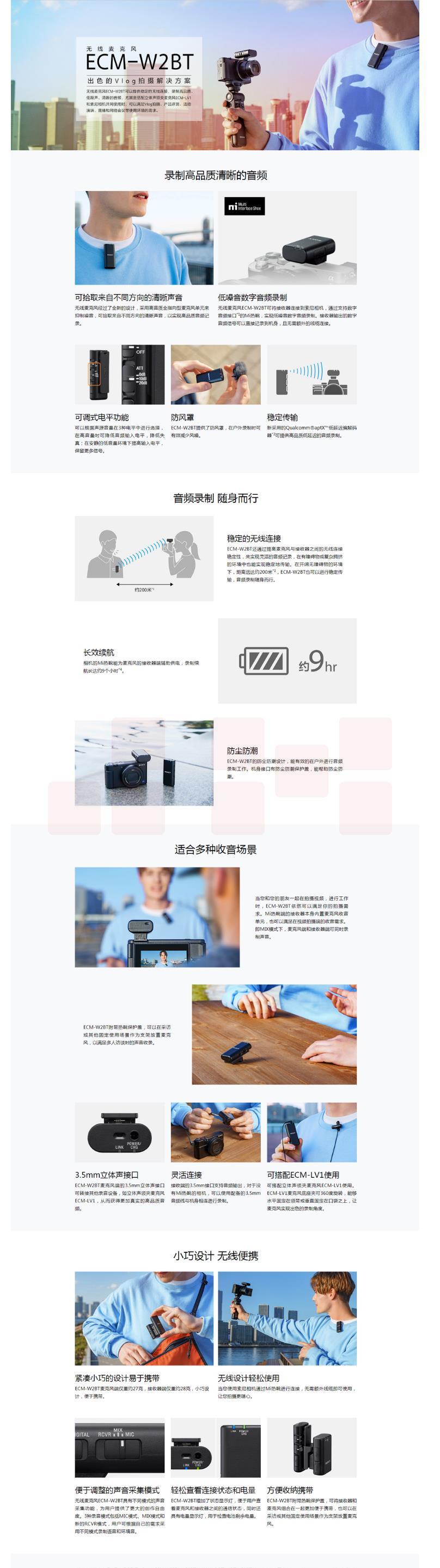 索尼(SONY) ECM-W2BT无线麦克风+ECM-LV1立体声领夹麦克风套装 货号:JC