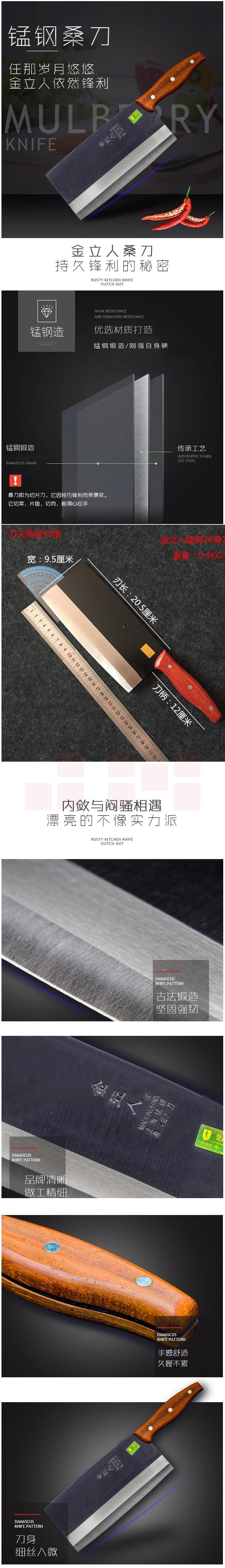 金立人 菜刀 桑刀 木柄 不锈钢桑刀 单刀不锈钢厨师专用切片刀