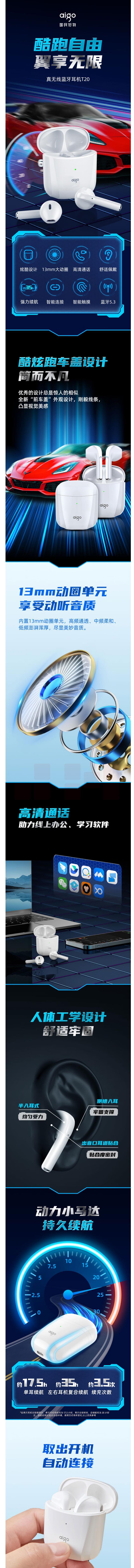 爱国者 T20真无线蓝牙耳机 半入耳式触控运动游戏跑步耳机