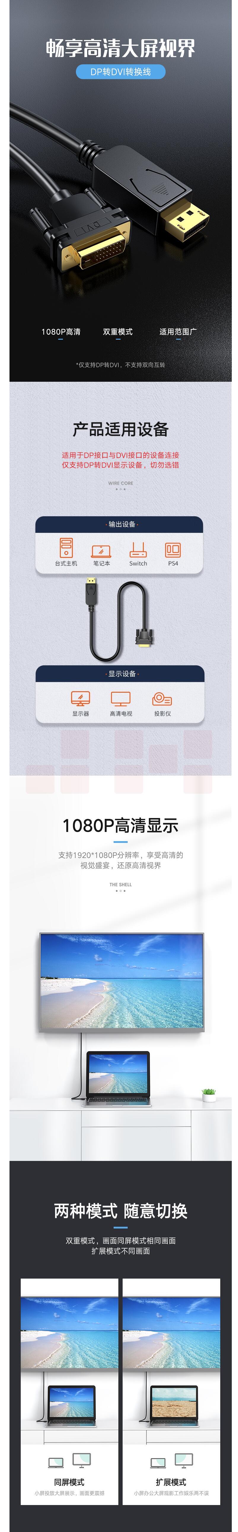 毕亚兹 DP转DVI转换线 3米 电脑接显示器投影仪连接线 HX12