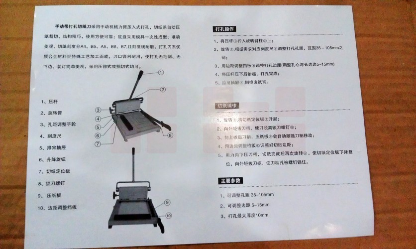 YG-210 手动打孔切纸裁纸刀三孔可调资料人事档案财务装订专用