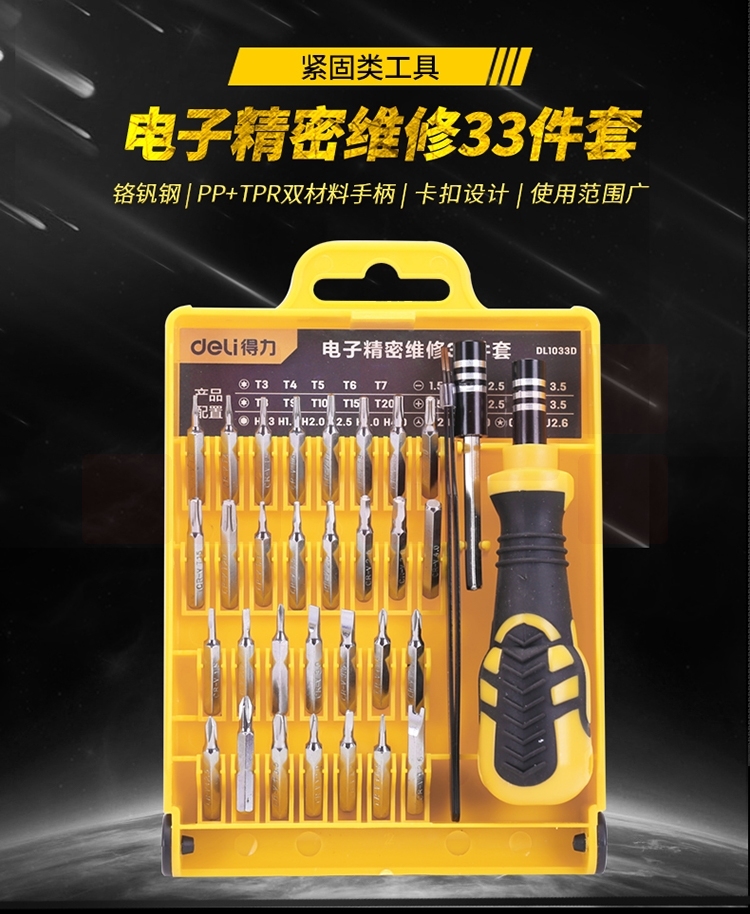 得力(deli) 多功能精密电子螺丝批组套33件螺丝刀套装 DL1033D