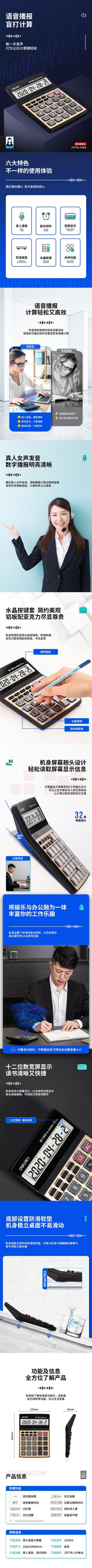 得力1526ES 12位语音计算器 亚克力面板语音计算机(金色)
