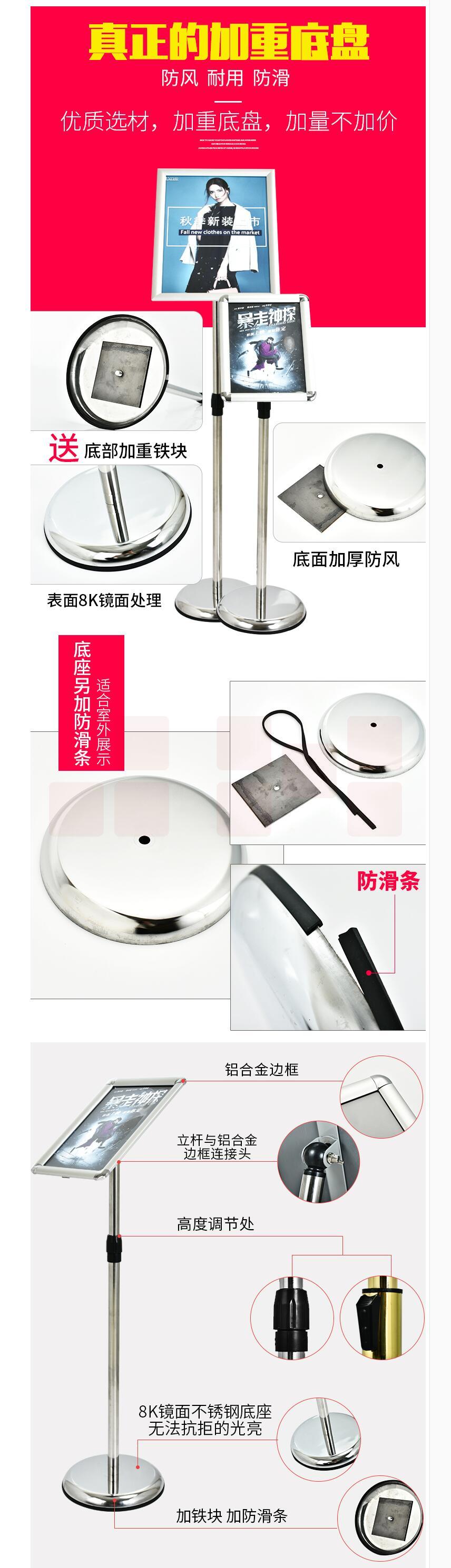 不锈钢A3立牌 指示牌 立式广告牌A3银色直角 货号:JC
