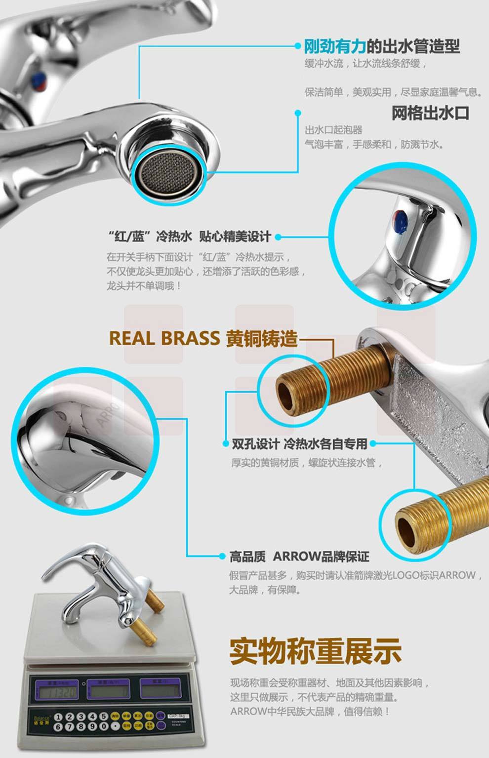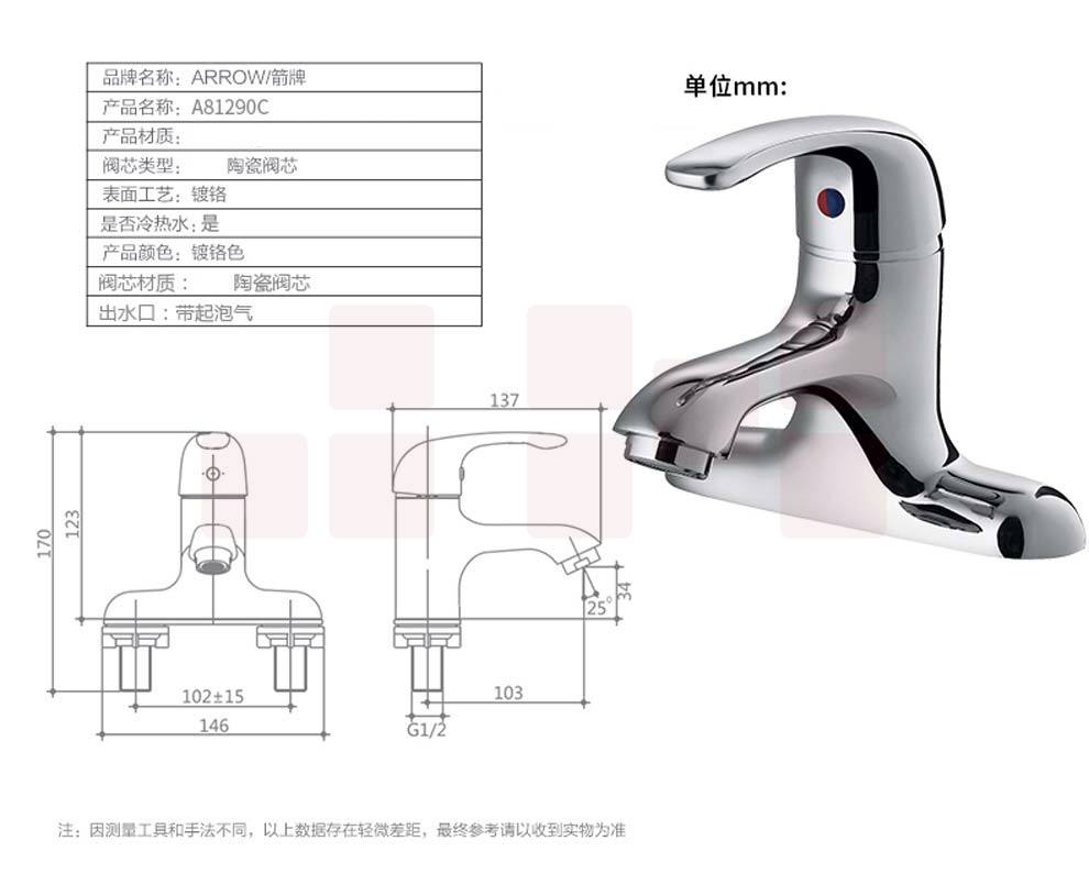 箭牌(ARROW) 卫浴台上盆水龙头 A81290C 全铜单把双孔冷热陶瓷阀芯水龙头