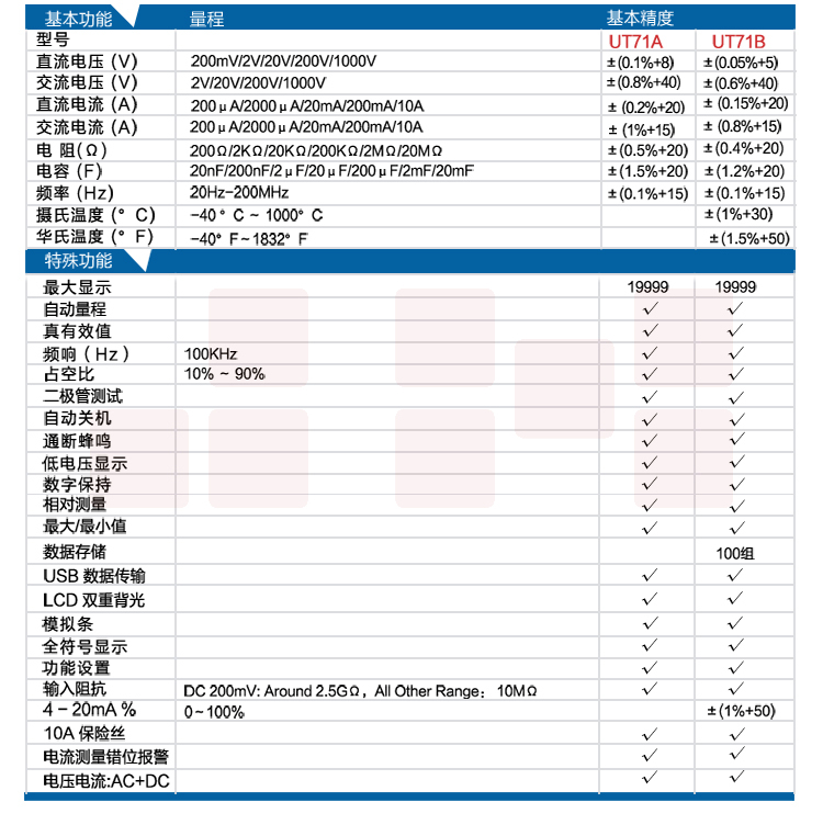 优利德(UNI-T) 智能型数字万用表 UT71A