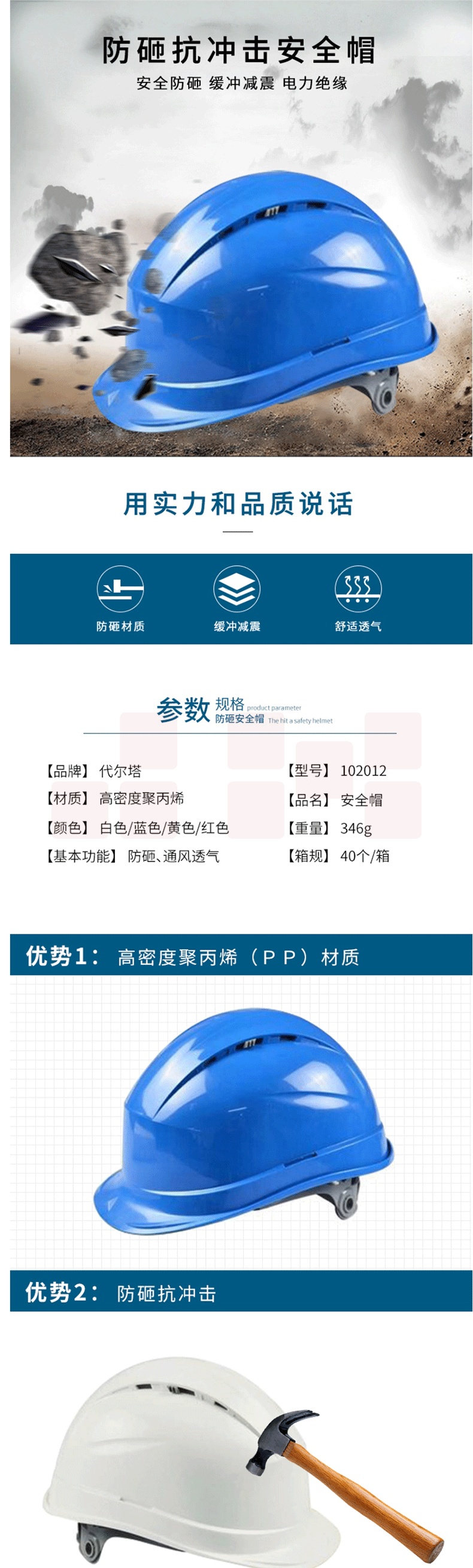 代尔塔 102012 QUARTZ石英1型PP 安全帽 白色