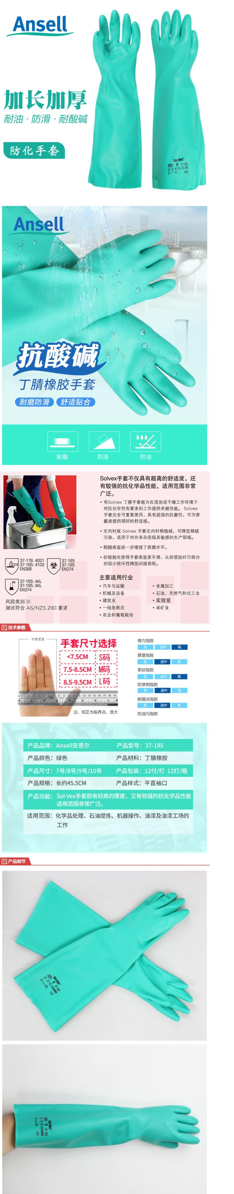 安思尔 37-185(45厘米)丁腈手套 耐酸碱防水防腐蚀手套