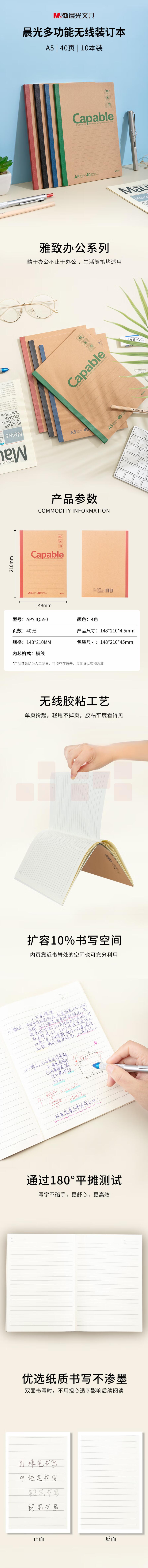 晨光 A5/40张 无线装订本 软抄本记事本APYJQ550 10本装
