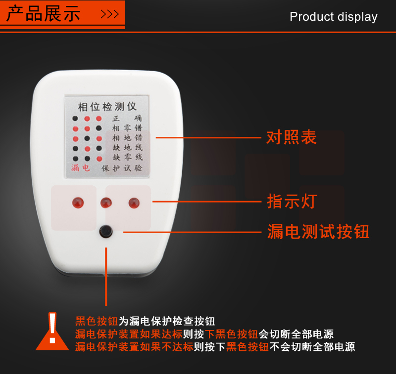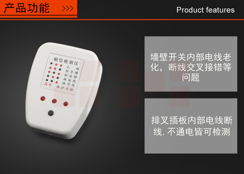 昆仑16A 验电器插座 验电插头 测电器电路线相位地线检测器