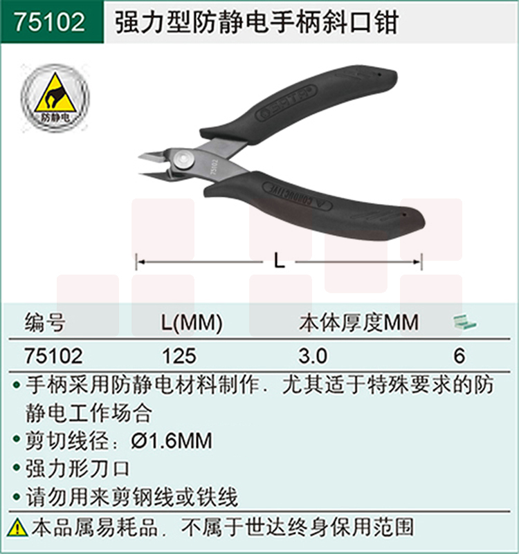 世达75102防静电手柄 5寸 斜口钳