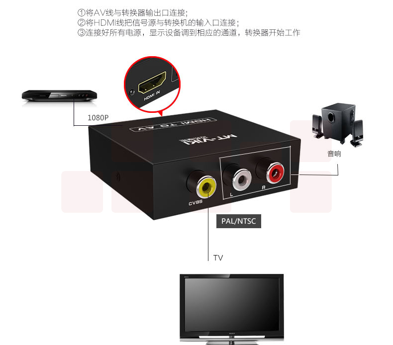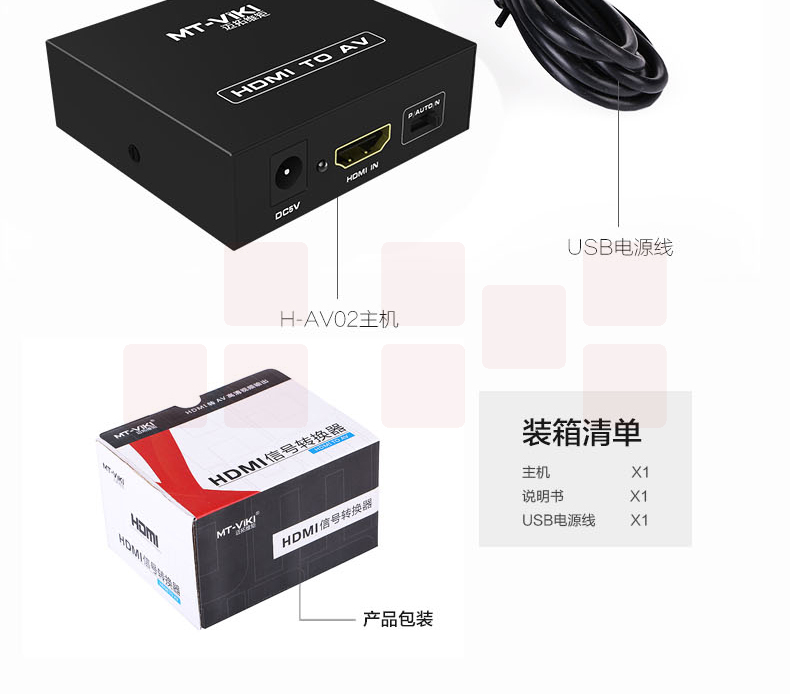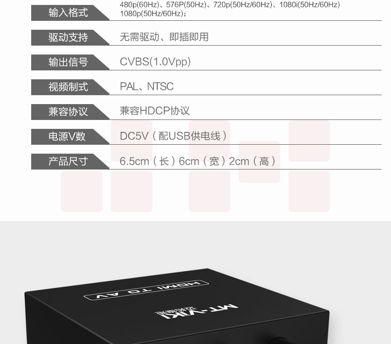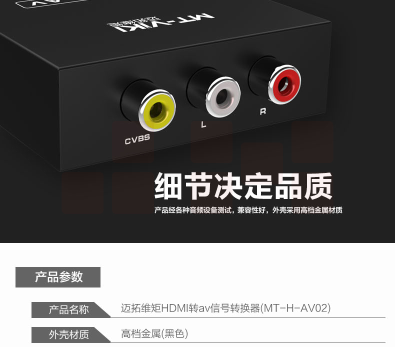 迈拓维矩MT-H-AV02 HDMI转AV转换器 音视频同步 高清机顶盒接