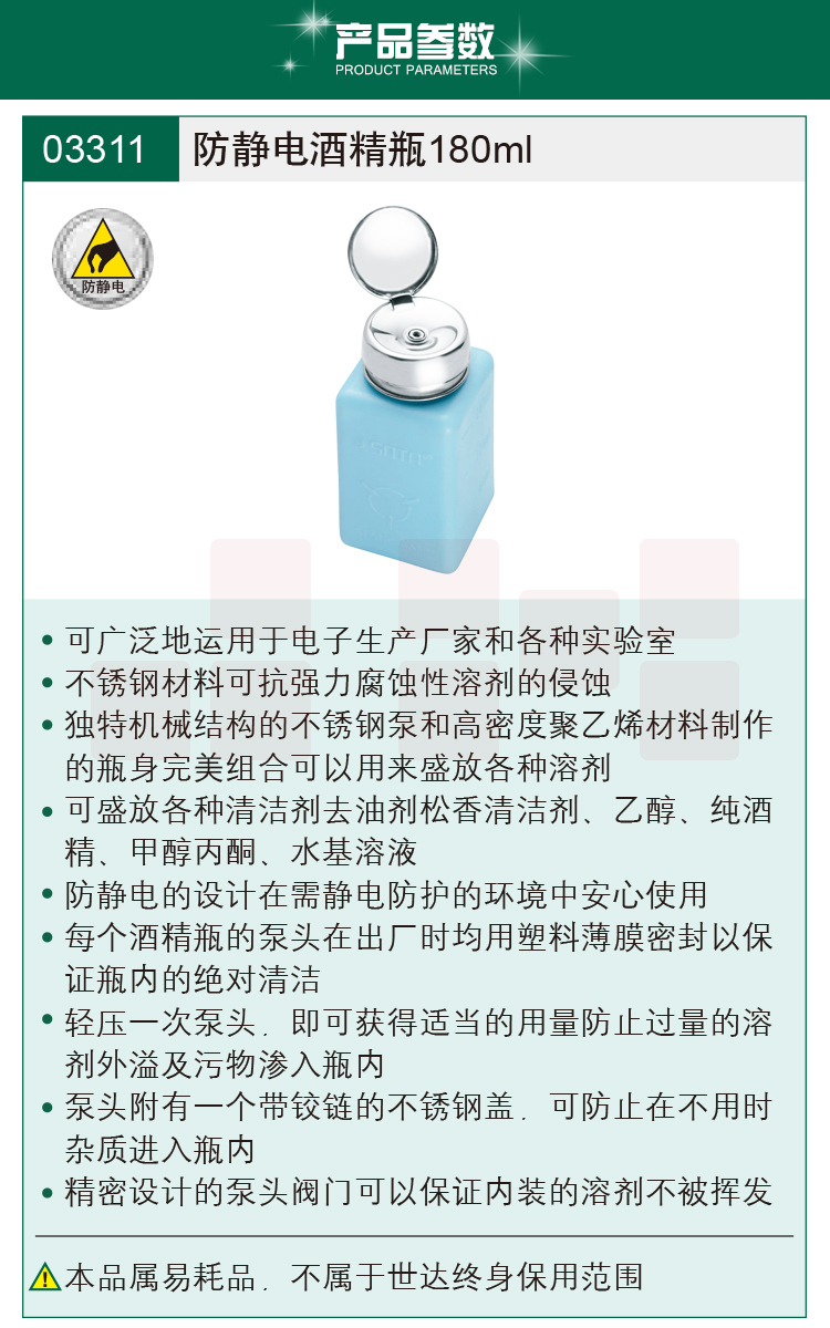 世达(SATA)防静电酒精瓶60ml 货号:03311