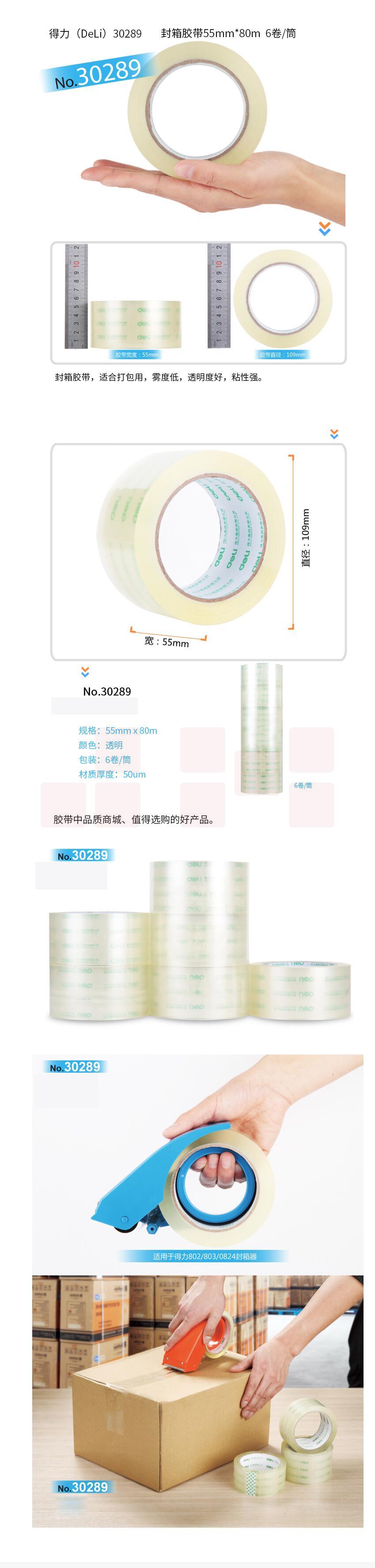 得力 30289 透明封箱胶带 55mm*80m*50um 6卷/筒 单卷价格