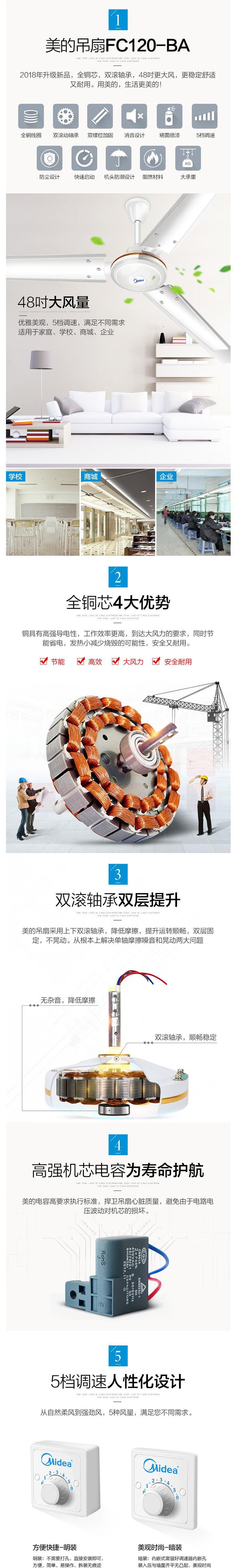 美的(Midea)吊扇 1.2米48吋家用楼顶扇 FC120-BA 白色