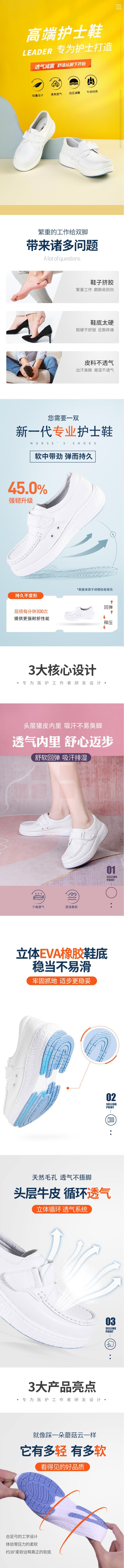 绯樱 BT1957护士鞋春秋季款真牛皮软底透气深口低帮平底一脚蹬工作鞋白色33~42码
