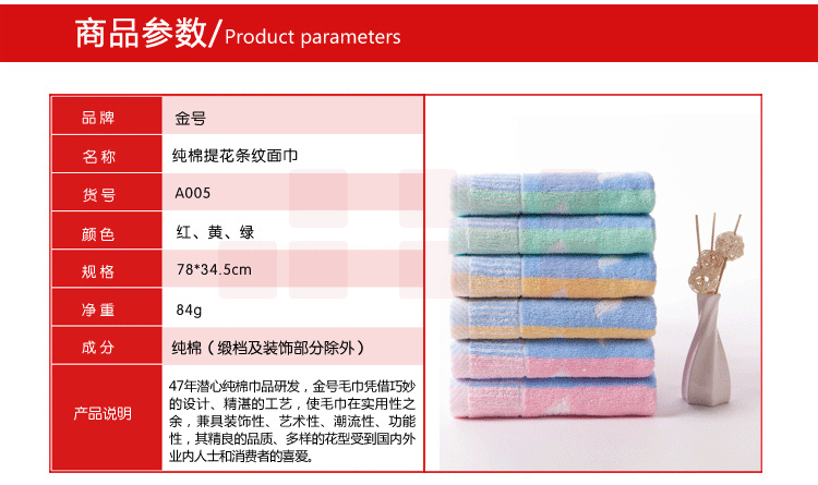 金号毛巾 纯棉毛巾 A005全棉提花面巾78*34.5CM 94克