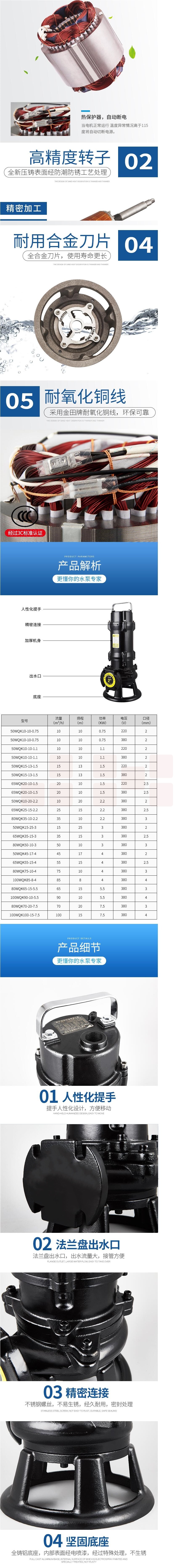 上海人民 WQK65-15-5.5 家用切割式污水泵 潜水泵切割泵 口径80流量65m²/h扬程15米功率5.5KW(不含安装)