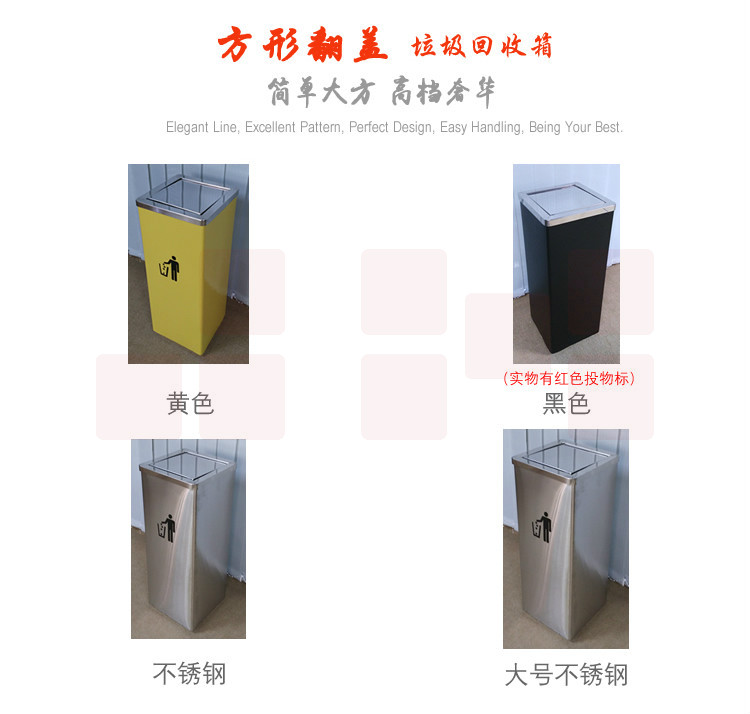 不锈钢方形摇盖垃圾桶小号 24*24*61cm