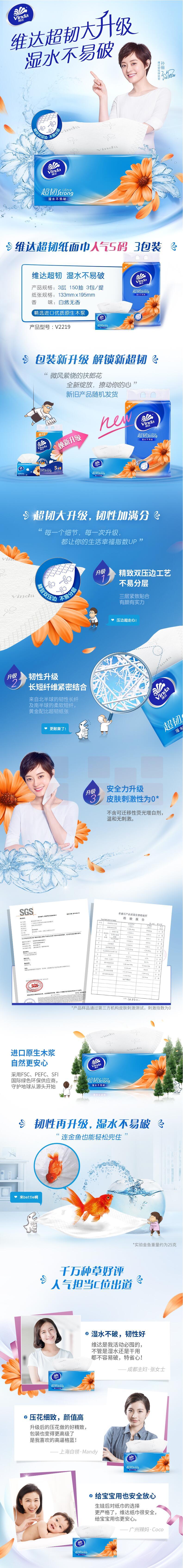 维达 超韧三层面巾纸 V2219 140*195mm 3层 150抽/包 3包/提(按提销售)