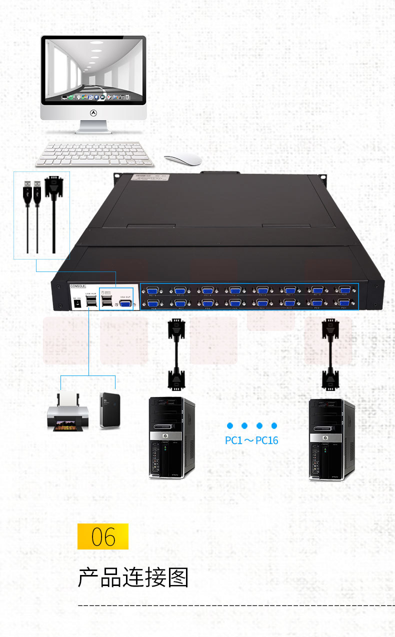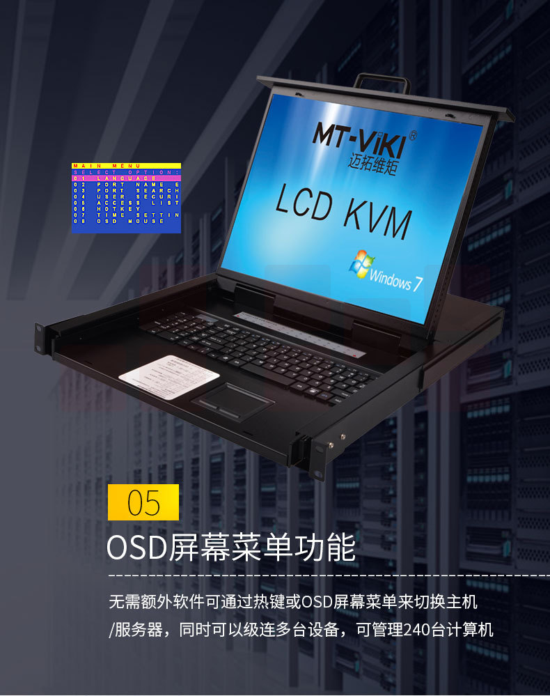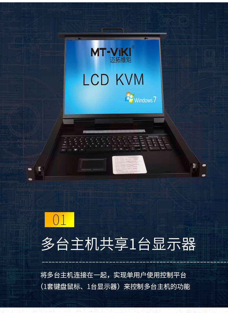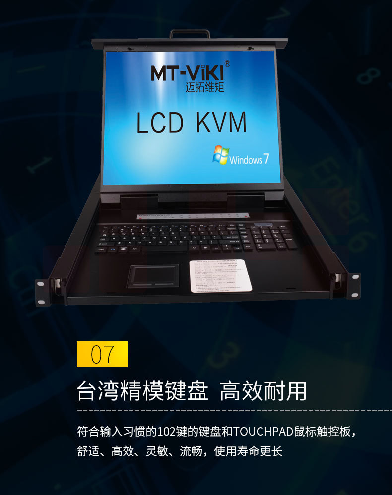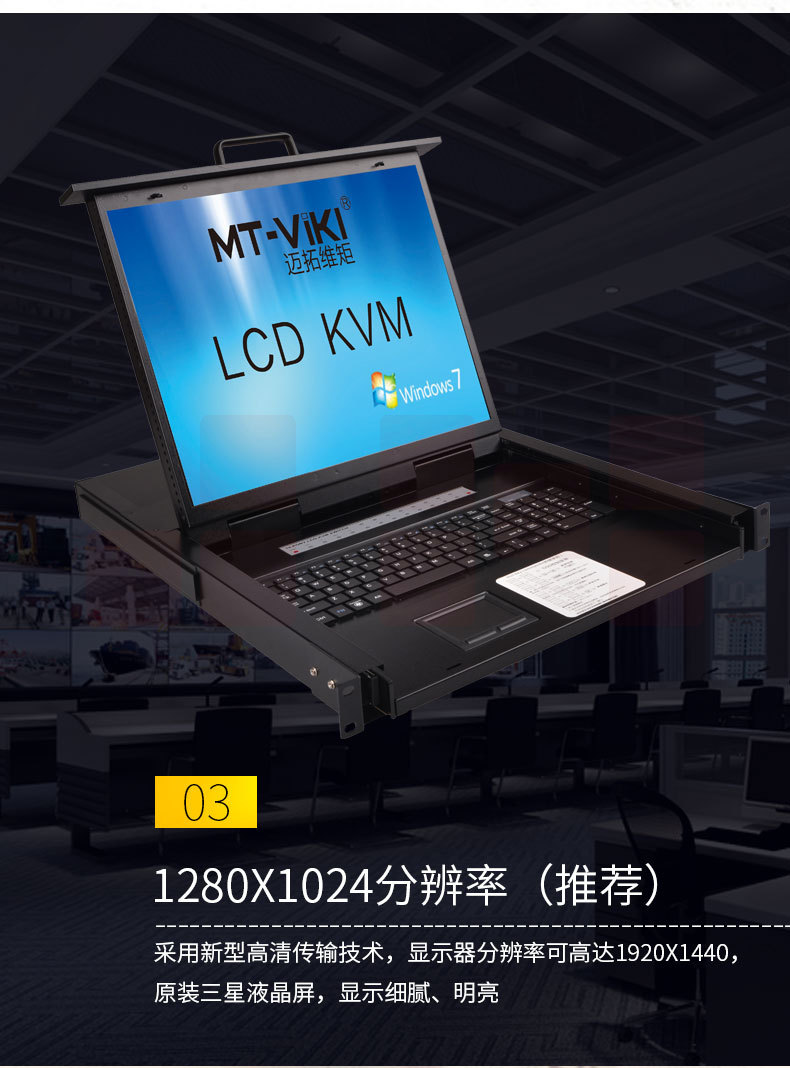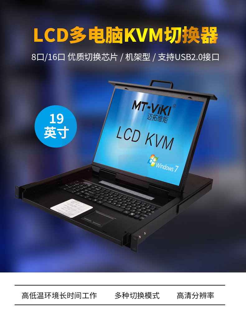 迈拓维矩(MT-viki)19英寸LCD液晶显示屏多电脑kvm切换器8口16口USB自动vga机架式 MT-1908UL 19寸LCD 八进一出