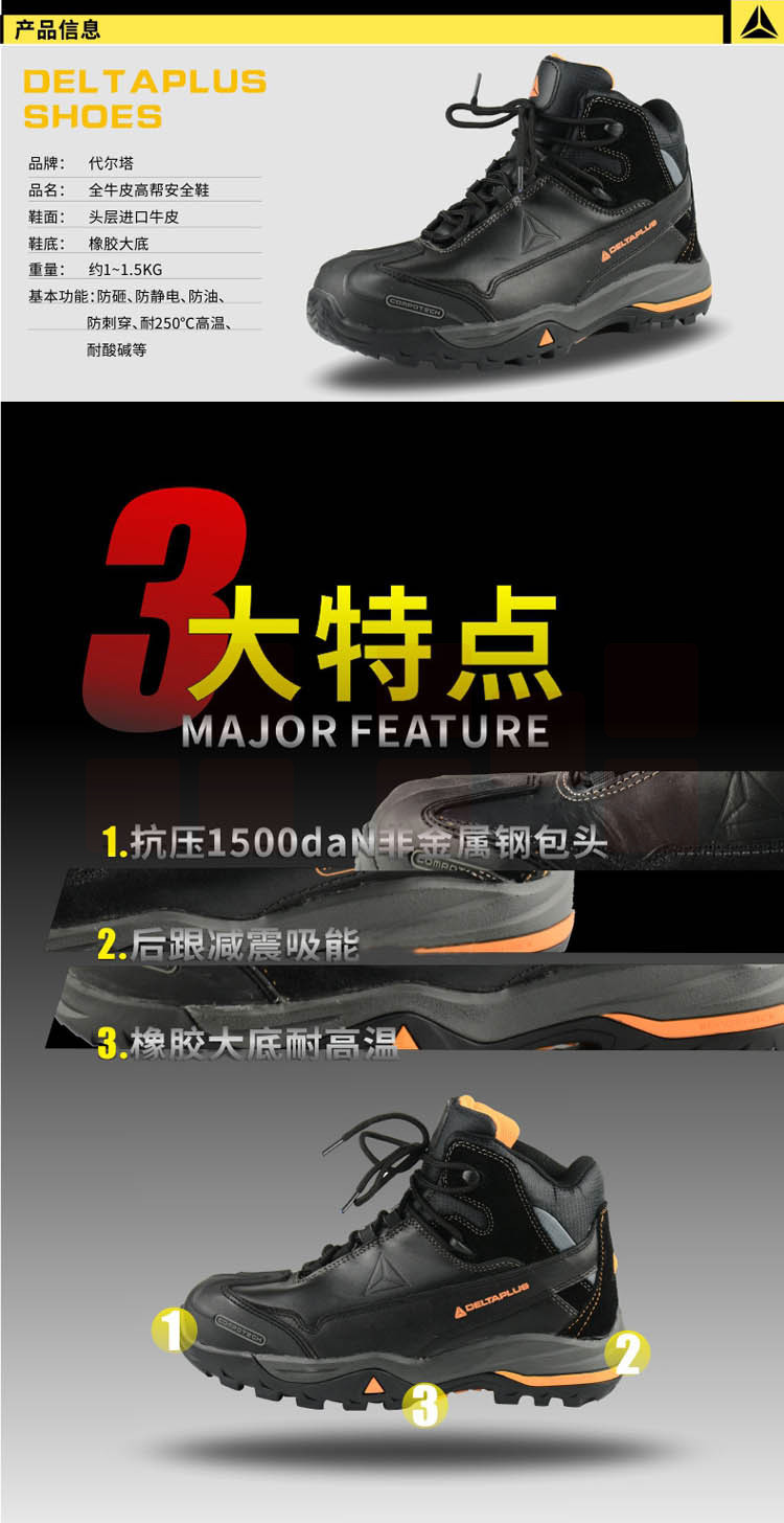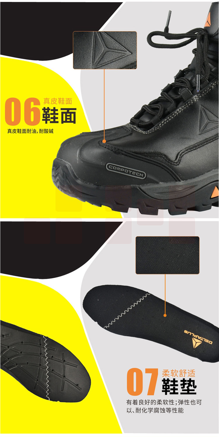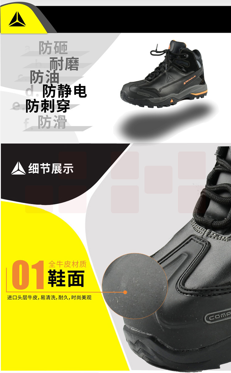 代尔塔 301336 黑色/耐酸碱劳保鞋男 耐高温安全鞋 耐寒防静电防滑防砸防刺穿工作鞋