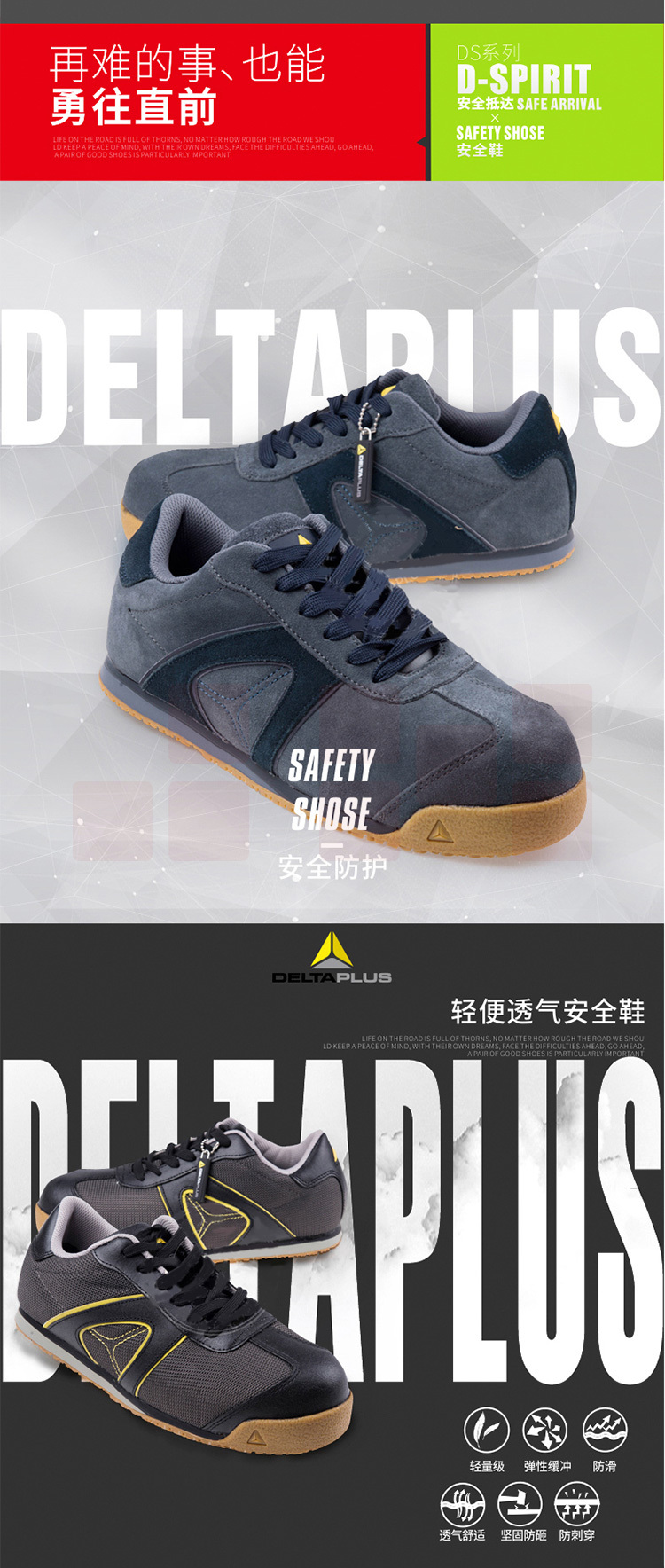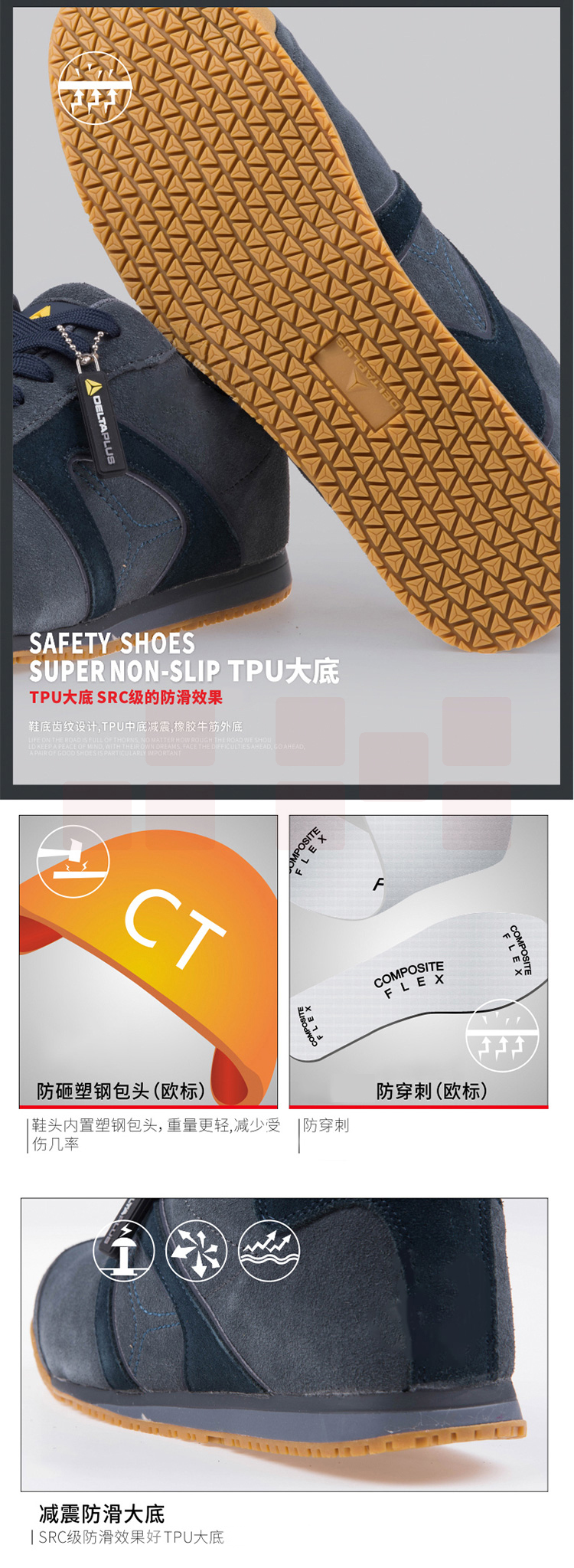 代尔塔301344 时尚翻毛皮牛筋底防砸防穿刺透气安全鞋 灰色
