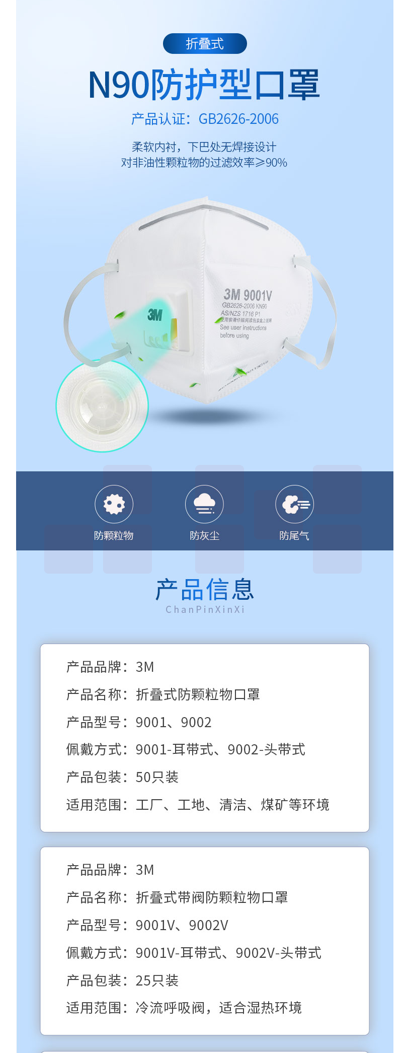 3M 9001v 防尘口罩带呼吸阀(耳带式)