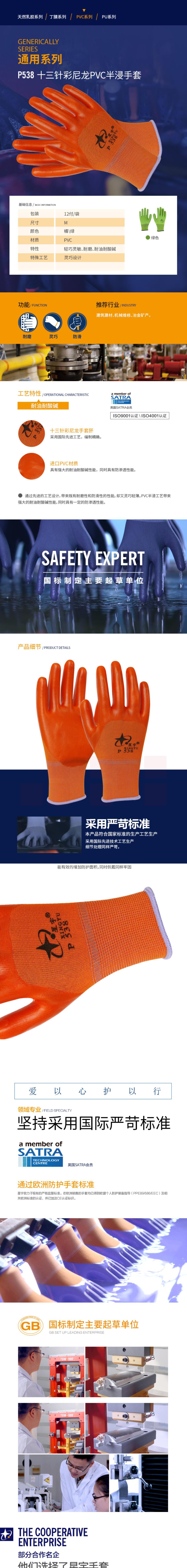 星宇 P538半挂型浸PVC胶手套耐酸碱防化手套 12付