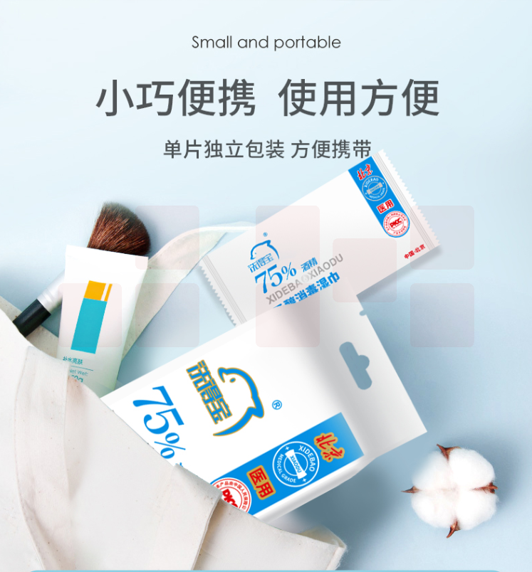 洗得宝 75%酒精湿巾 一次性消毒酒精棉片大号 单片独立包装 免洗洗手消毒液湿巾 10片