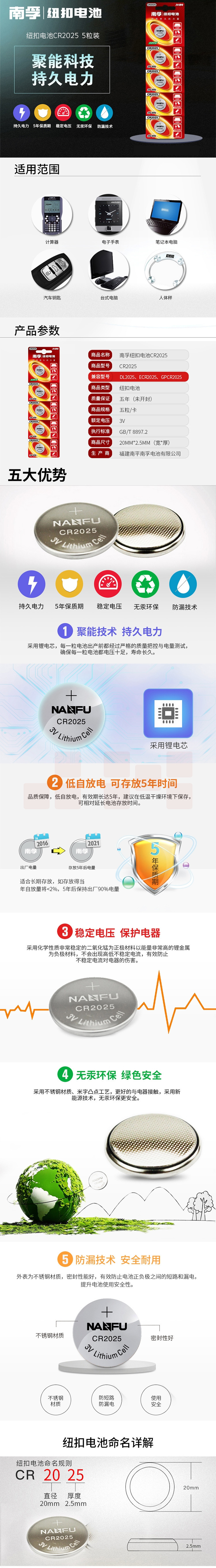 南孚 CR2025 纽扣电池 3V锂电池 手表电池 5粒/卡 单粒价格