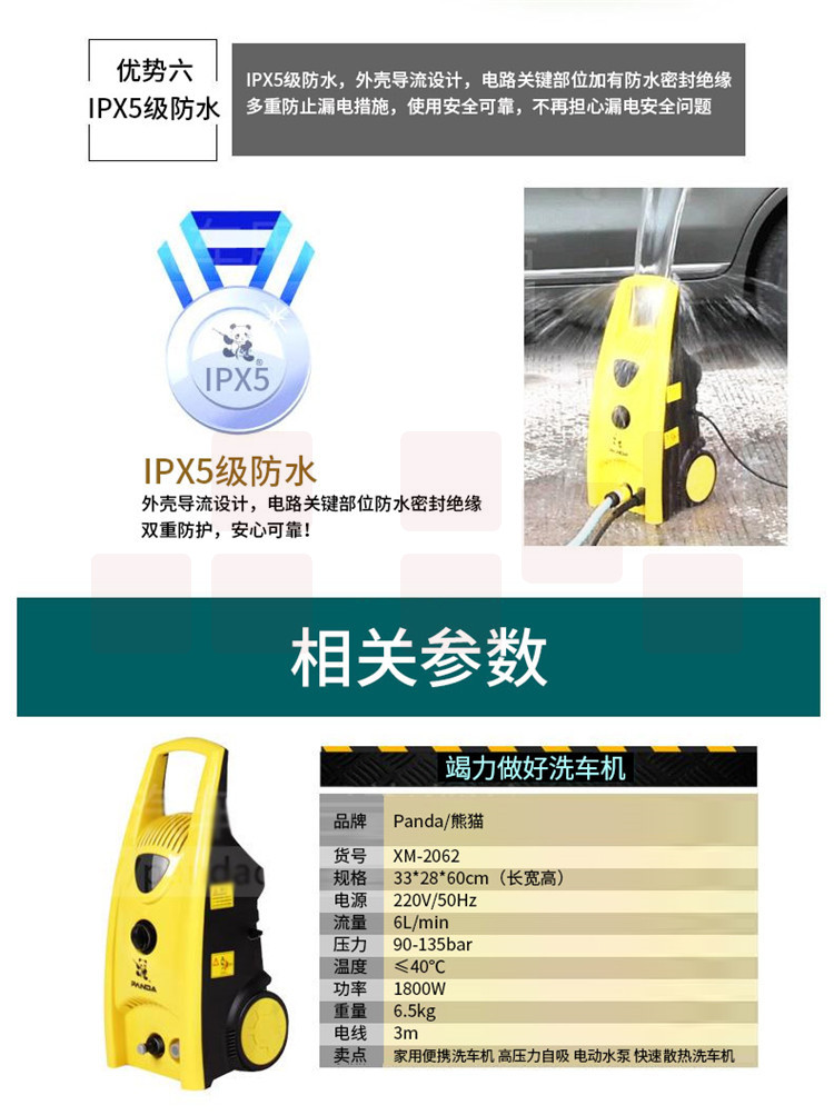 熊猫 XM-2062S 家用便携高压清洗机