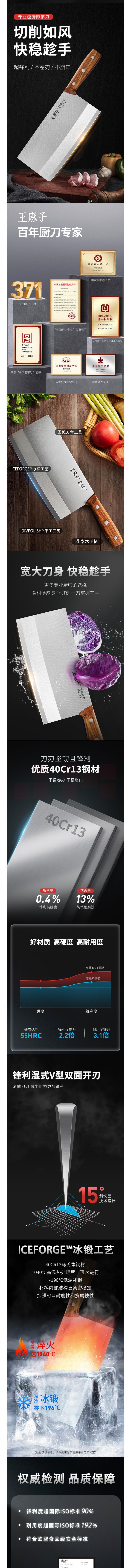 王麻子专业厨师刀 专用切菜切肉切片刀 货号:JC