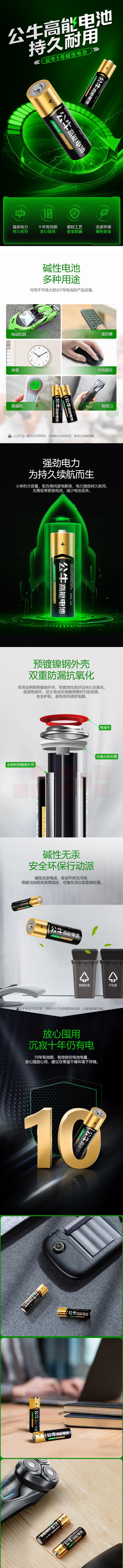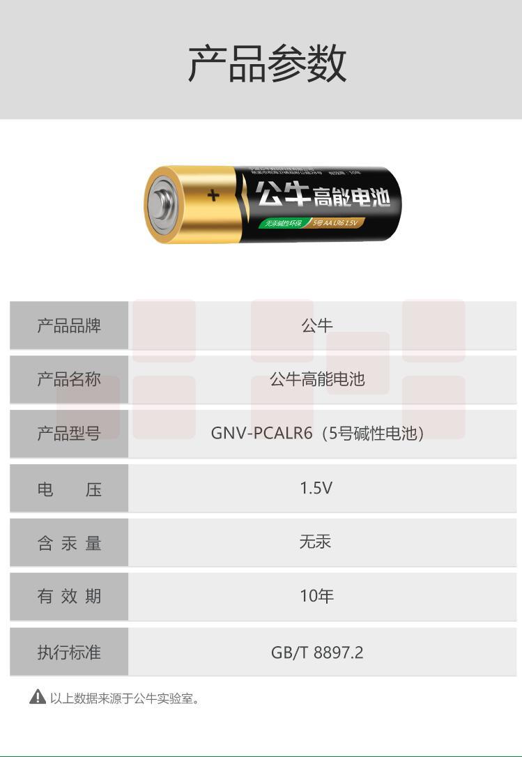 公牛 5号电池 5粒装/卡 独立分装 1.5V碱性无汞电池(50粒/盒)