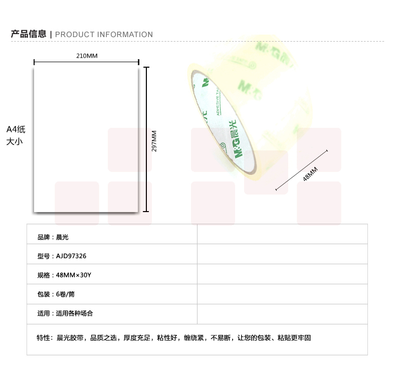 晨光 透明胶带48mm*30Y AJD97326 6卷/装